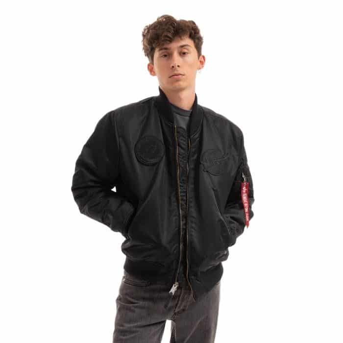 Kurtka Alpha Industries MA-1 VF NASA 166107-404 w kolorze czarnym to stylowa opcja, która łączy klasyczny design bomberki z nowoczesnymi materiałami. Wykonana z nylonu, jest odporna na wiatr, co sprawia, że dobrze chroni przed chłodem. Syntetyczne wypełnienie zapewnia dodatkowe ciepło, co jest istotne w chłodniejsze dni. Zamek błyskawiczny ułatwia szybkie zakładanie i zdejmowanie kurtki.