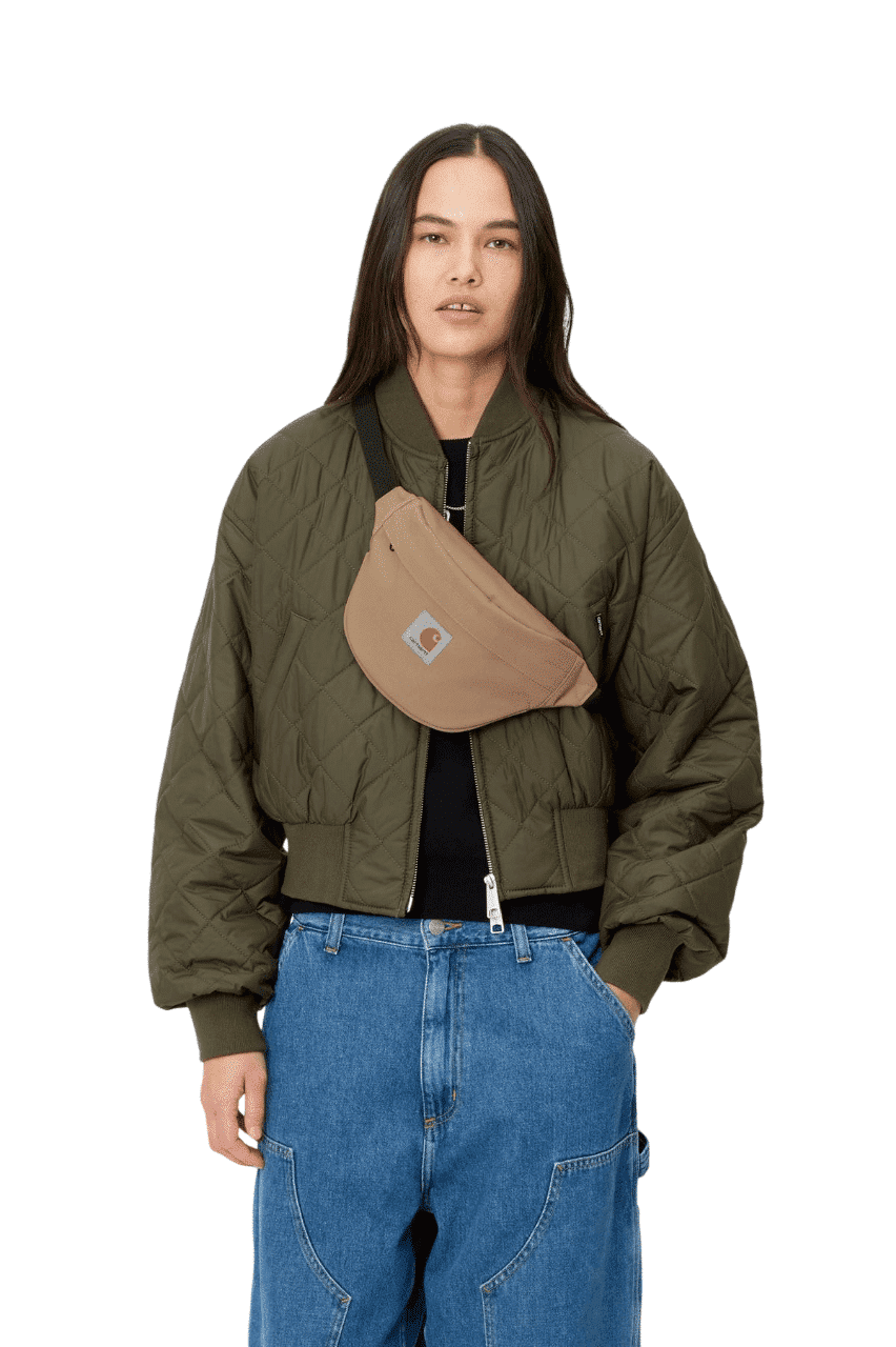 Nerka Carhartt Jake Hip Bag w brązowym kolorze to funkcjonalne rozwiązanie na codzienne wyjścia i aktywności na świeżym powietrzu. Wykonana z wytrzymałego poliestru, gwarantuje odporność na warunki atmosferyczne, co pozwala na dłuższe użytkowanie. Z pojemnością 2.8 L i wymiarem 13 x 29 x 8.5 cm, zmieścisz najważniejsze przedmioty, takie jak portfel czy telefon, nie obciążając przy tym pleców. Dodatkowe kieszenie umożliwiają wygodne przechowywanie drobiazgów, tak aby były zawsze pod ręką.