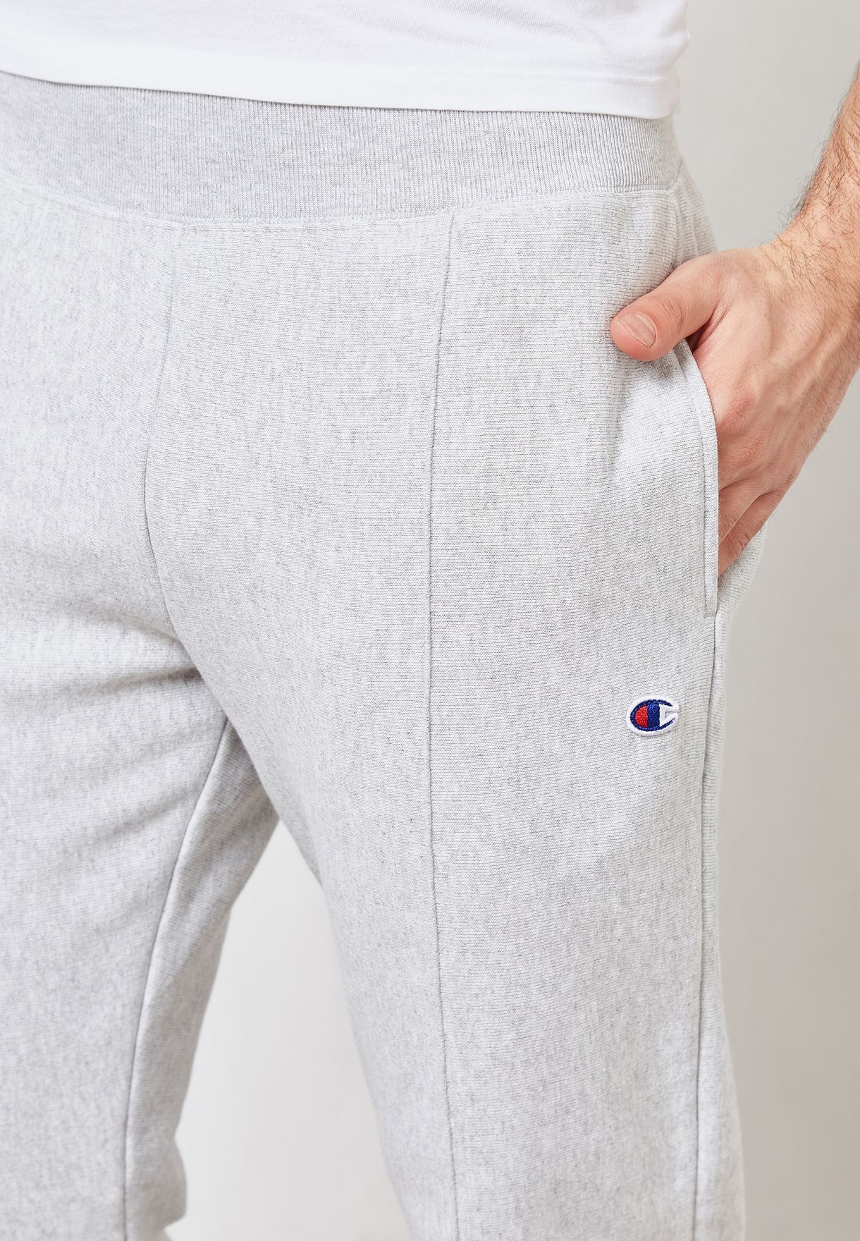 Spodnie Champion Premium Reverse Rib Cuff 212583-EM004 to dresowe spodnie męskie w szarym kolorze, które łączą wygodę z nowoczesnym wyglądem. Wykonane z wysokiej jakości bawełny, zapewniają miękkość w kontakcie z skórą, co wpływa na przyjemność noszenia. Dzięki regulowanemu wiązaniu w pasie, możesz dopasować je do swojej sylwetki, co zwiększa swobodę ruchów podczas aktywności. Nadrukowane logo marki na nogawce dodaje charakteru, podkreślając sportowy styl.