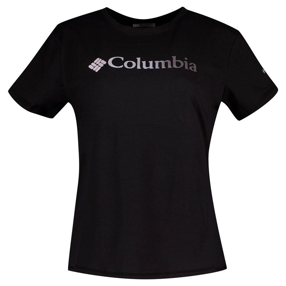 Koszulka Columbia Sun Trek SS Graphic Tee w kolorze czarnym to stylowy element garderoby, który wyróżnia się logo marki na froncie. Wykonana z wysokiej jakości bawełny, gwarantuje miękkość i przewiewność, co jest istotne w ciepłe dni. Okrągły dekolt dodaje klasycznego charakteru, a regularny krój zapewnia swobodę ruchów.