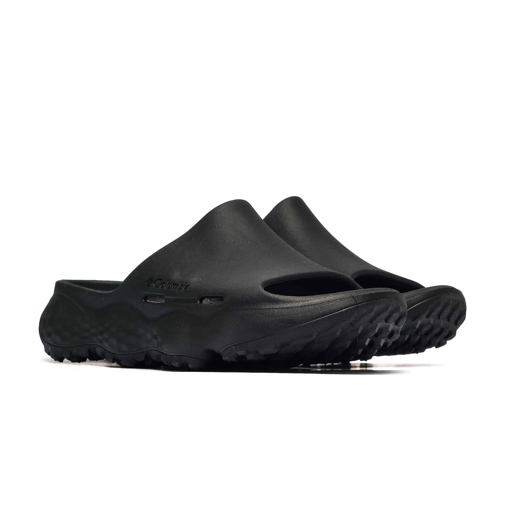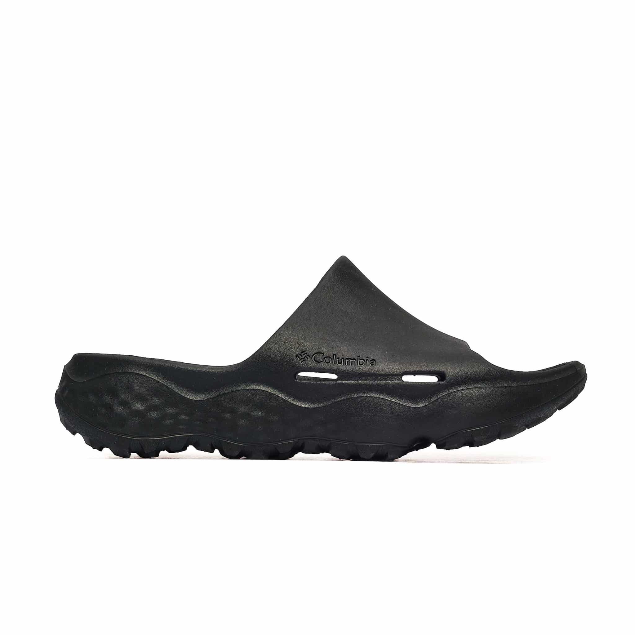 Model Columbia THRIVE REVIVE od Converse to wsuwane klapki, które łączą wygodę z nowoczesnym designem w klasycznym czarnym kolorze. Wykonane z syntetycznego materiału zewnętrznego oraz tworzywa sztucznego wewnątrz, zapewniają trwałość i łatwość w pielęgnacji. Niska cholewka i okrągły nosek sprawiają, że idealnie dopasowują się do stopy, co przekłada się na komfort noszenia. Guma na podeszwie zewnętrznej zwiększa przyczepność, co jest szczególnie istotne podczas codziennych spacerów. Te klapki sprawdzą się podczas letnich wypadów nad wodę, a także w miejskim stylu życia, pasując do luźnych spodni lub szortów.