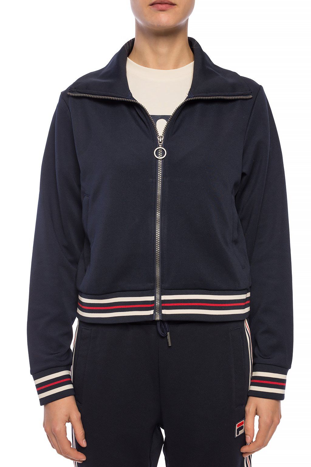 Bluza Fila Women Lerdidwen Track Jacket 687293-170 w granatowym kolorze to idealny wybór na aktywności sportowe, łączący wygodę z nowoczesnym wyglądem. Wykonana z bawełny, jest miła w dotyku i przewiewna, co zapewnia komfort podczas intensywnego wysiłku. Długi rękaw i stójka chronią przed chłodem, a klasyczne logo dodaje atrakcyjności wizualnej. Regularny fason sprawia, że bluza dobrze leży na sylwetce, umożliwiając swobodne ruchy.