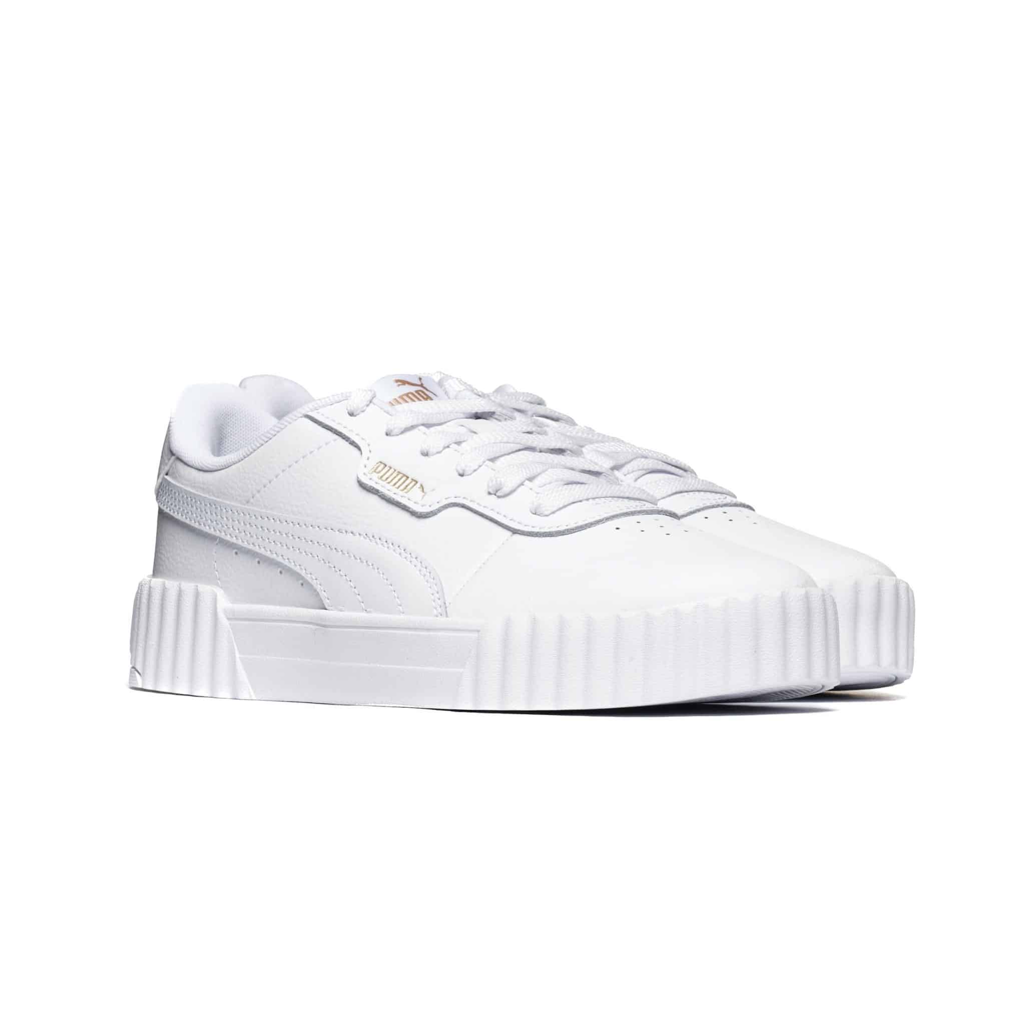 Białe sneakersy Puma Carina 3.0 to połączenie klasyki z nowoczesnym stylem, które wyróżniają się skórzaną cholewką. Dzięki niskiej cholewce i okrągłemu noskowi, obuwie zapewnia swobodę ruchów, co czyni je idealnym do codziennych stylizacji. Wnętrze z tkaniny gwarantuje odpowiednią wentylację, a wygodna wkładka z tkaniny sprawia, że noszenie ich przez cały dzień to czysta przyjemność. Guma w podeszwie zewnętrznej zapewnia dobrą przyczepność, co jest istotne podczas spacerów po mieście czy aktywności na świeżym powietrzu. Puma Carina 3.0 świetnie komponuje się z jeansami i casualowymi sukienkami, dodając każdej stylizacji lekkości i sportowego charakteru.