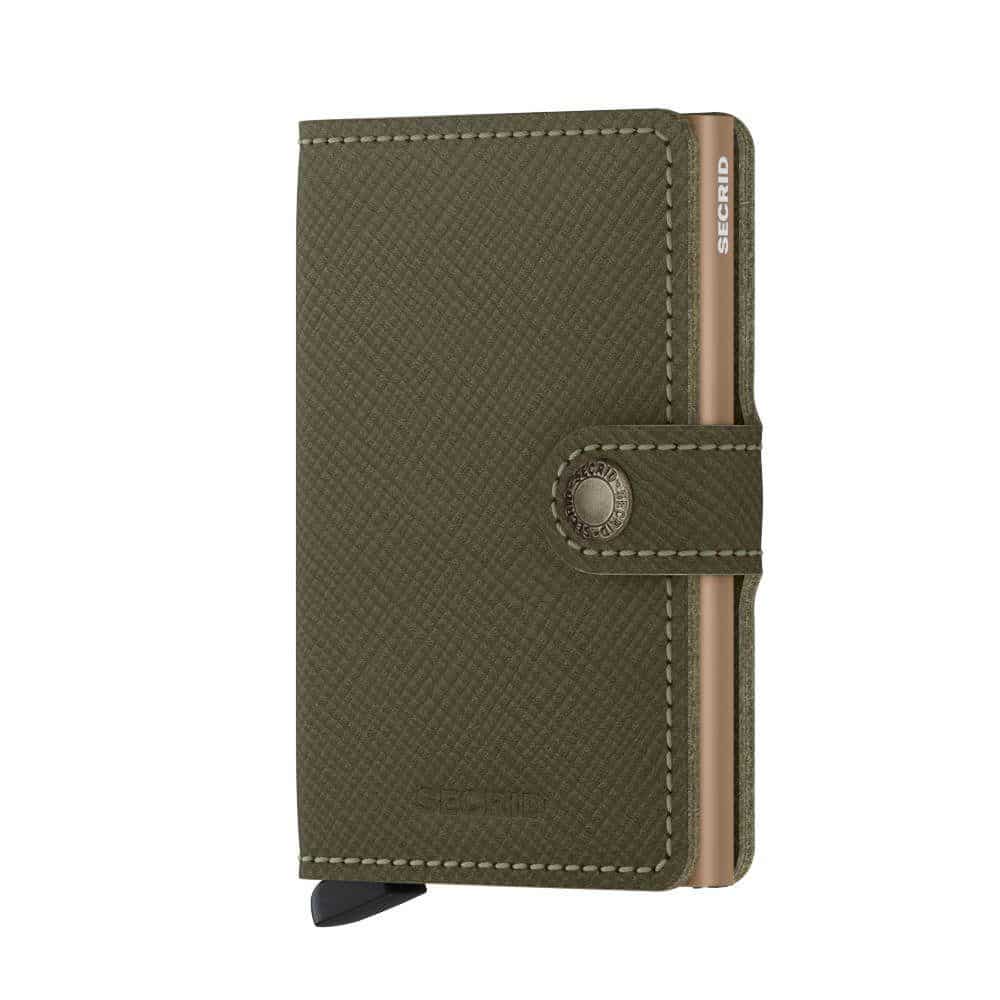Secrid Miniwallet Saffiano Olive to kompaktowy portfel, który łączy funkcjonalność z eleganckim wyglądem w odcieniu oliwkowym. Wykonany z naturalnej skóry, jest odporny na codzienne zużycie, co przekłada się na długotrwałe użytkowanie. Posiada jedną główną komorę oraz trzy przegródki na karty, co umożliwia przechowywanie najważniejszych dokumentów w zasięgu ręki. Zatrzaskowe zapięcie zabezpiecza zawartość, eliminując ryzyko przypadkowego otwarcia.