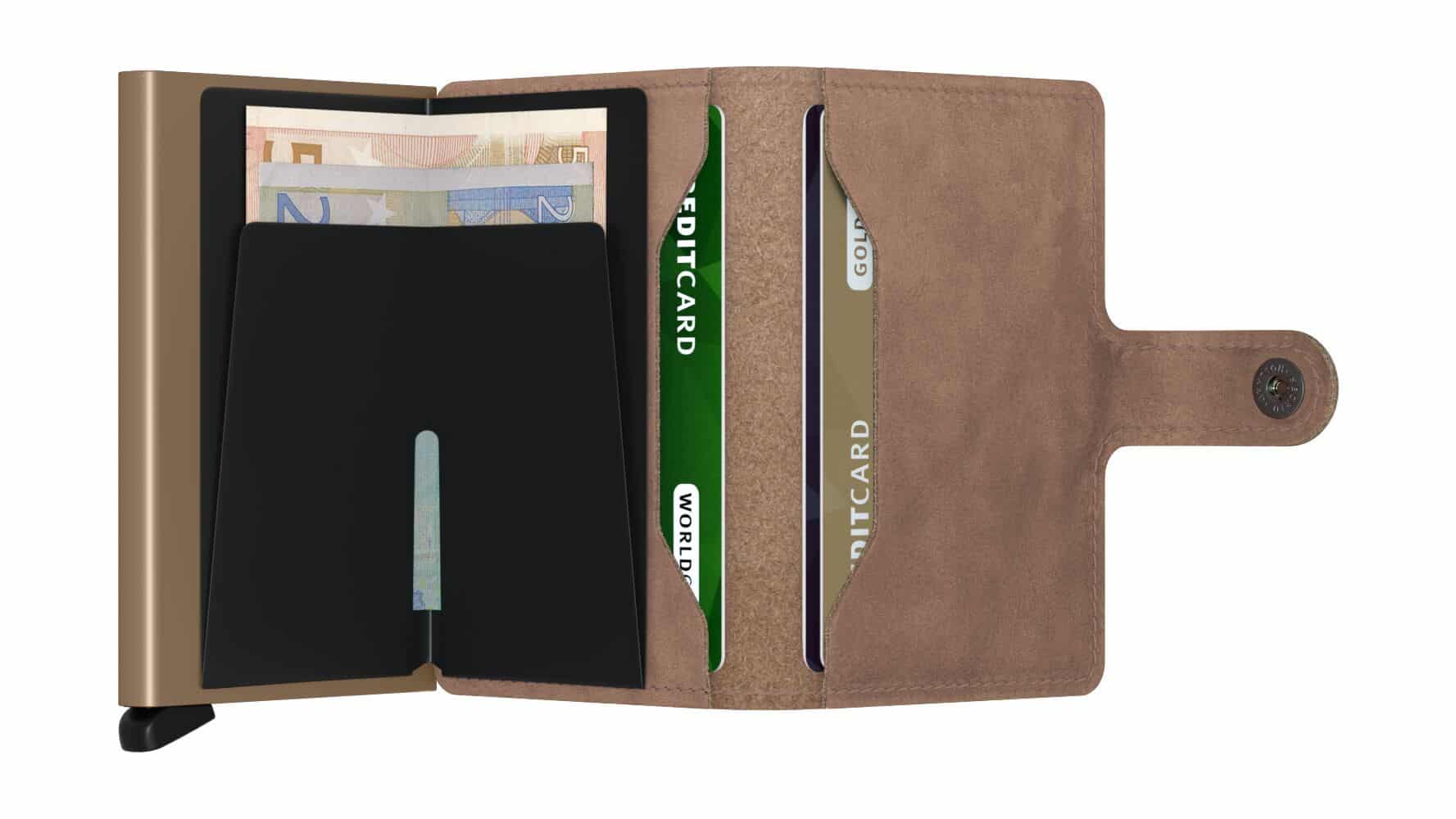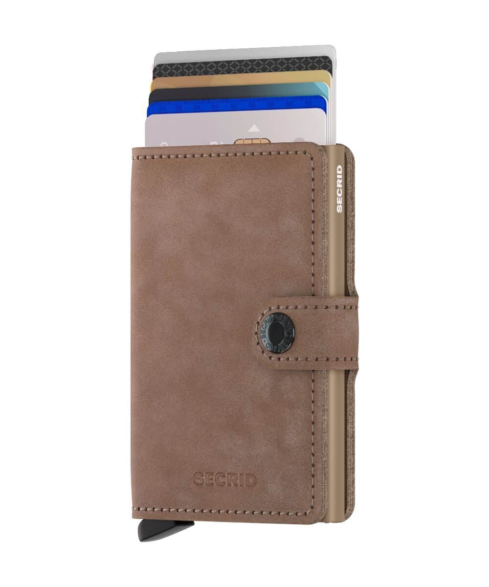 Secrid Miniwallet Vintage Taupe to portfel, który łączy elegancję naturalnej skóry z kompaktowym rozmiarem, co ułatwia jego przenoszenie. Dzięki pionowej orientacji i wymiarom 10 x 6,5 x 2,1 cm mieści się w kieszeni czy torebce, oszczędzając miejsce. Posiada jedną komorę zamykaną na zatrzask oraz trzy przegródki na karty, co umożliwia łatwą organizację kart płatniczych i dokumentów.