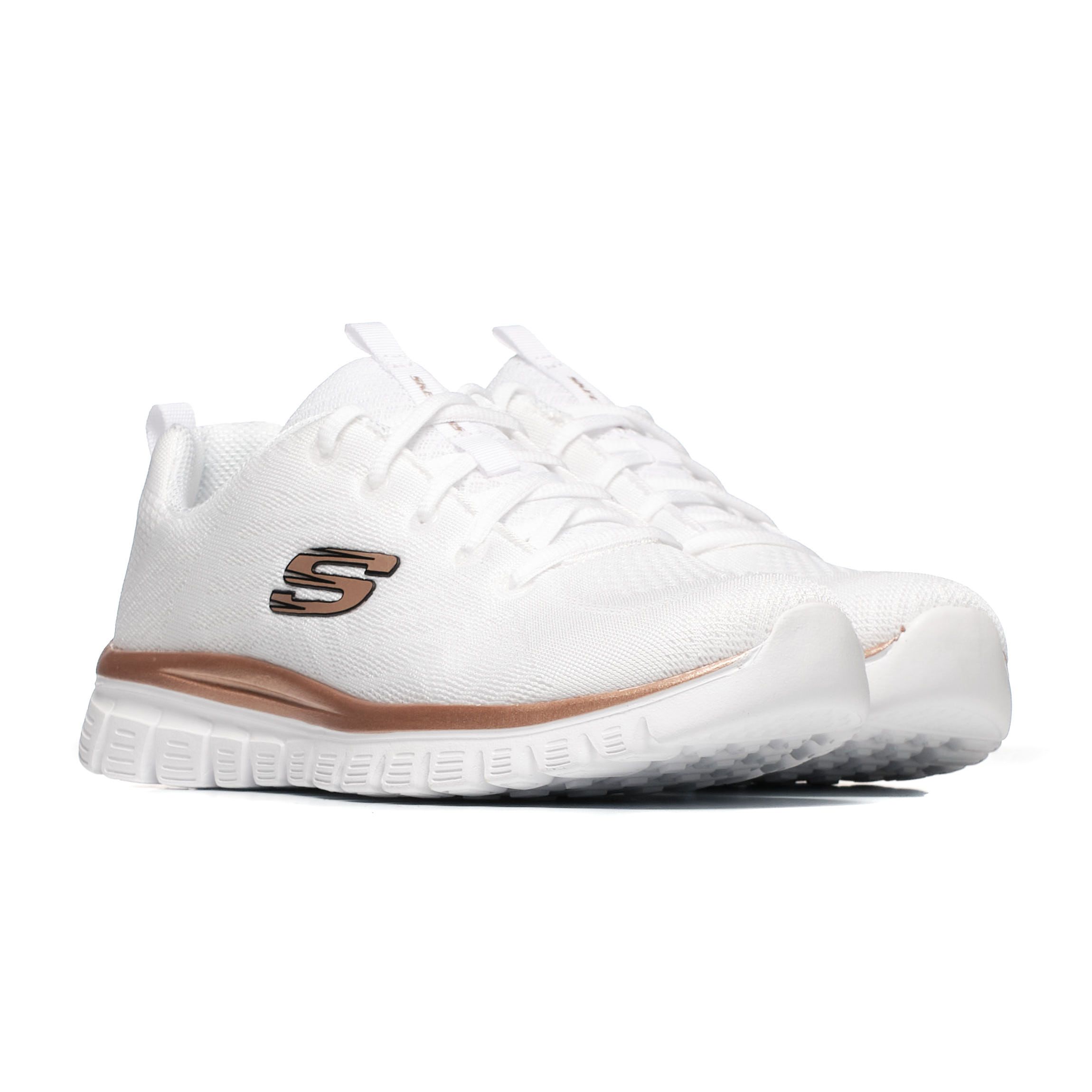 Sneakersy Skechers GRACEFUL-GET CONNECT 12615-WTRG w kolorze białym to model, który łączy komfort z nowoczesnym stylem. Wykonane z trwałego tworzywa sztucznego, zapewniają odpowiednią wentylację, co sprawia, że są idealne na cieplejsze dni. Posiadają elastyczną podeszwę, która zwiększa amortyzację i wspiera naturalny ruch stopy, minimalizując uczucie zmęczenia podczas długotrwałego noszenia. Ich lekka konstrukcja ułatwia codzienne użytkowanie, a prosty design sprawia, że łatwo je zestawić z różnorodnymi stylizacjami. Sneakersy te to praktyczne rozwiązanie dla aktywnych kobiet, które cenią sobie wygodę i modny wygląd.
