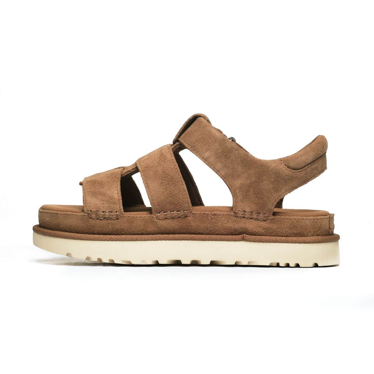 Sandały Ugg Goldenstar 1137890-CHE w kolorze brązowym to doskonały wybór na sezon wiosna-lato. Wykonane z naturalnej skóry zamszowej, zapewniają wygodę noszenia i trwałość. Ich minimalistyczny design sprawia, że łatwo dopasujesz je do różnych stylizacji, od codziennych po bardziej eleganckie. Miękka podeszwa gwarantuje amortyzację podczas chodzenia, co wpływa na komfort użytkowania przez cały dzień. Dodatkowo, brązowy kolor sprawia, że sandały są łatwe do zestawienia z innymi elementami garderoby. Ugg Goldenstar to propozycja dla kobiet, które cenią sobie styl i komfort w każdej sytuacji.