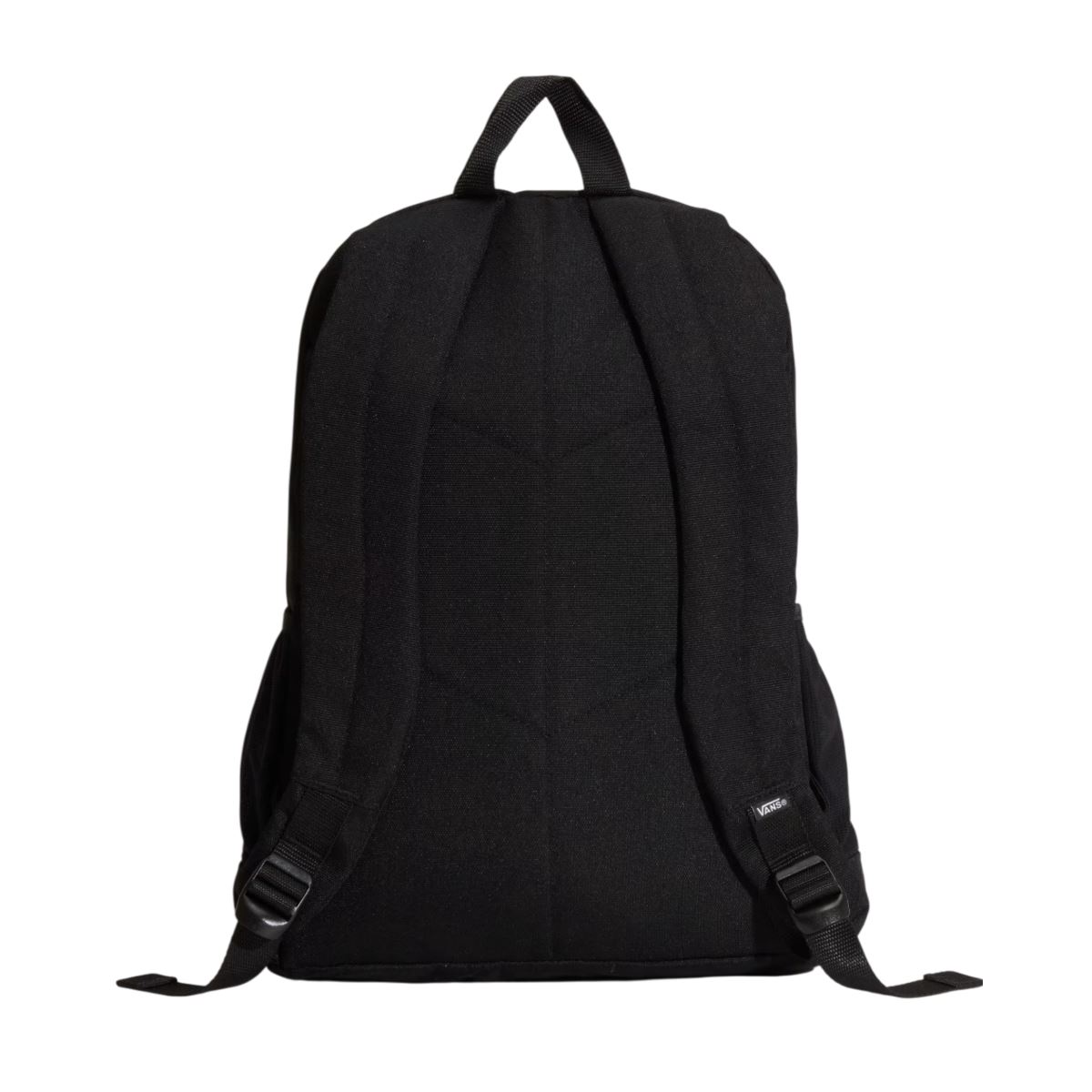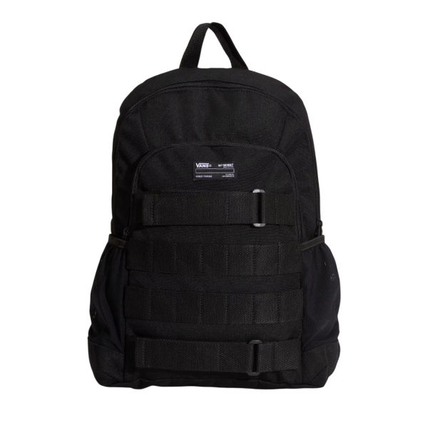 Ten model (VN000PSEBLK) został zaprojektowany tak, by ogarnąć codzienne noszenie i porządek w środku. Ma wyściełaną kieszeń na laptopa, zewnętrzną komorę na suwak oraz wewnętrzny organizer, który pomaga utrzymać wszystko na swoim miejscu. Po bokach znajdują się elastyczne kieszenie z siatki na butelki, a wygodę noszenia zapewniają ergonomiczne, wyściełane szelki. Dodatkowo plecak wyposażono w regulowane paski na deskorolkę.